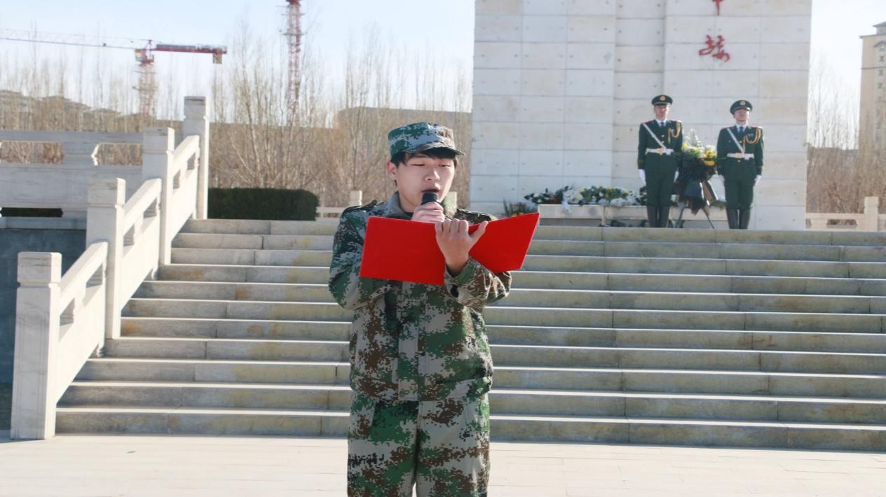 同学们怀着深厚的爱国情怀和对先烈的无限哀思唱响国歌。鲜花献英烈,哀思祭忠魂。国旗护卫队迈着坚定的步伐向革命先烈敬献鲜花,师生依次敬献花束,表达缅怀之情。团员代表朱永峰进行演讲,诉说了对革命英烈的赞颂与怀念,表达了对先烈的缅怀之情。随后,学生党员乔佳带领全体党员重温入党誓词,张萌带领全体团员重温入团誓词,铮铮誓言,字字千钧。慷慨激昂的声音回荡在烈士陵园上空。党的光辉,照耀着青年的成长之路,激励青年争做时代追梦人,以党的信念为指引,不断追求进步。