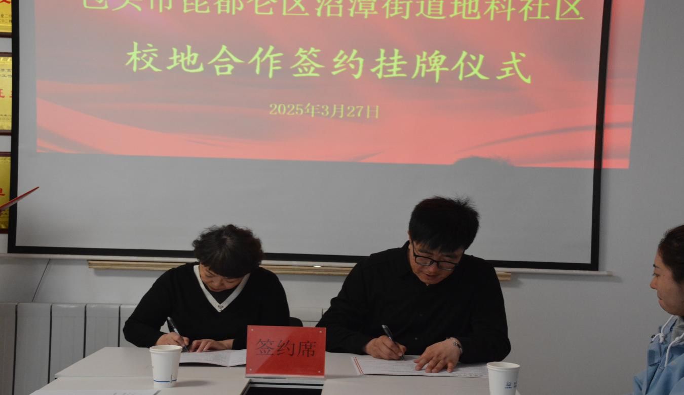 为实现“校地协同育人、双向赋能”的目标,2025年3月27日,beat365英国官方网站与包头市昆都仑区沼潭街道地科社区举行了校地合作签约挂牌仪式,共建大学生社会实践基地。