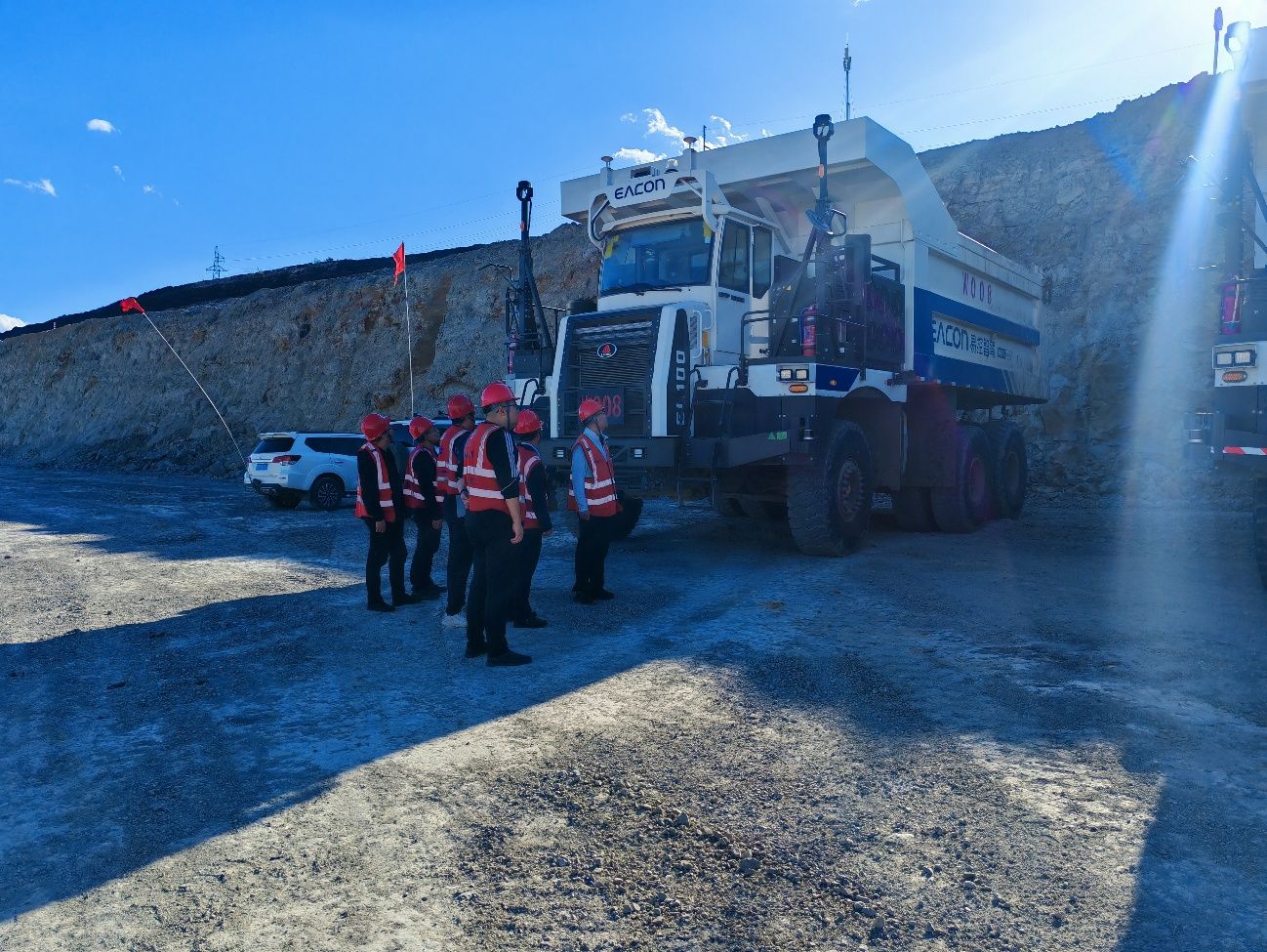 到访期间,beat365官网一行就国家电投内蒙古能源有限公司的发展历程、生产作业流程及智能矿山建设等方面进行深入了解,并对南露天煤矿无人驾驶自卸车进行了参观。