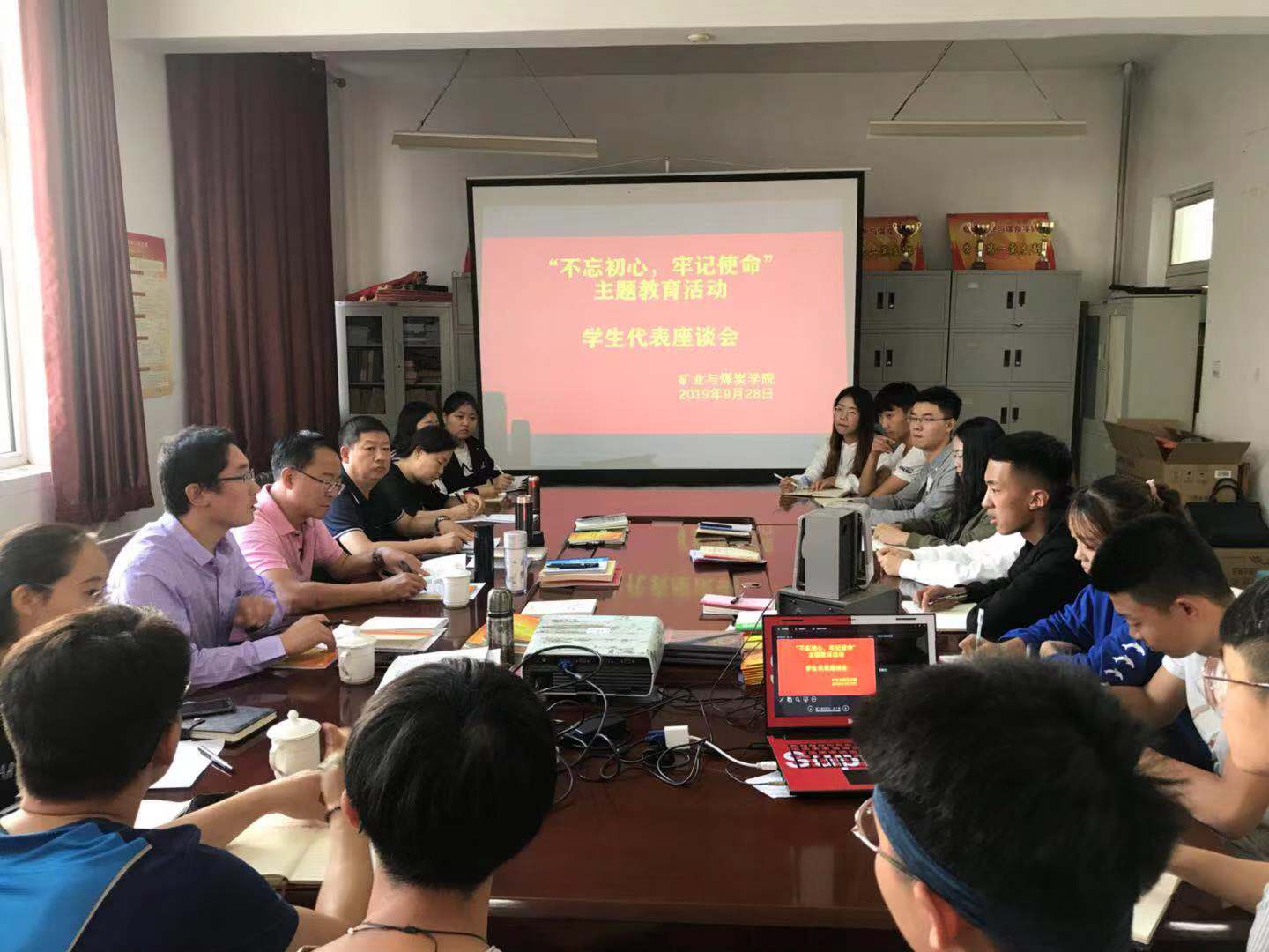 9月28日15:00,beat365英国官方网站党总支中心组在临曦楼204党员之家开展“不忘初心 牢记使命”主题教育之学生座谈会。