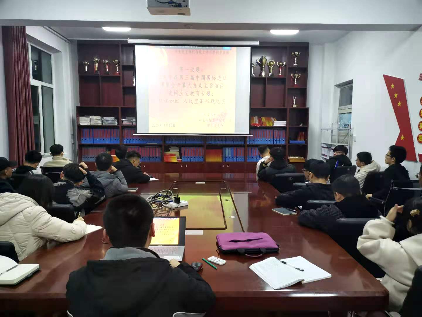 回首人民空军那些刻骨铭心的故事,抒发对人民空军的深厚情义,beat365英国官方网站党总支于2020年1112日晚上19:30,在临曦楼二楼党员之家线上线下同步开展专题理论学习活动。本次学习内容是:第一议题:学习习近平在第三届中国国际进口博览会开幕式上发表主旨演讲讲话精神;爱国主义教育专题:观看《征途如虹人民空军征战纪实》视频。