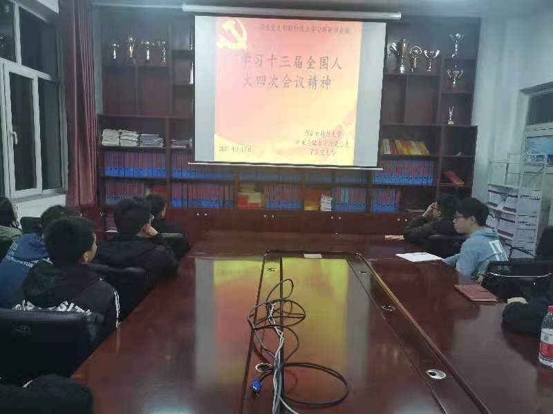 为增强“四个意识”,坚定“四个自信”,做到“两个维护”,同心协力,担当尽责,朝着实现中华民族伟大复兴的中国梦奋勇前进。beat365英国官方网站党总支于2021年3月7日晚上19:00,在临曦楼党员之家线上线下同步开展专题理论学习活动。本次学习内容是:集中学习十三届全国人大四次会议精神。