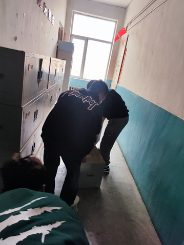 学生第五党支部党员、积极分子们利用自己的课余时间,清理了临曦楼党员之家门口楼道间放置的柜子。在搬迁的过程中,大家分工明确,各司其职。