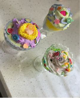 活动开始,同学们选好要粘在奶油胶上的小配件和喜欢的奶油胶颜色,开始尽情发挥自己的想象,用色彩斑斓的奶油胶打造独一无二的奶油杯。