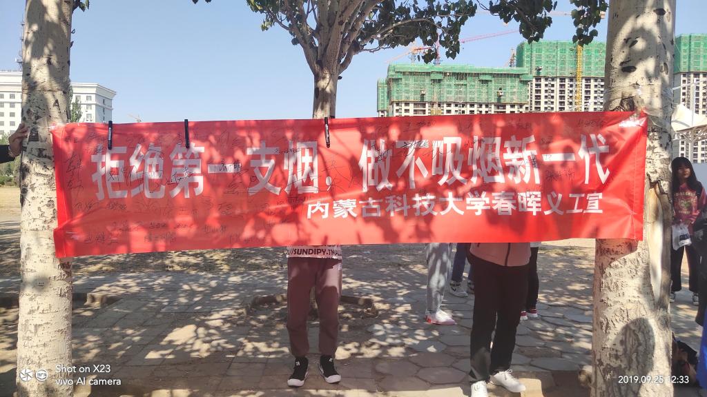 为创造一个洁净、优美的校园环境,2019年9月25日beat365英国官方网站春晖义工协会在东校区梅园餐厅门口开展了“不忘初心、牢记使命”为主题的禁烟教育活动。