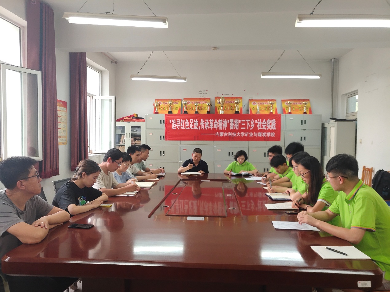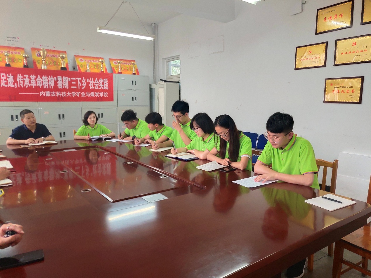 会议开始,首先由团队队长赵辰杰、贫困学生代表王芳分别发言,表达了圆满完成实践任务的决心。接着杜书记介绍了三下乡活动的基本情况,并且在学习延安精神和走进贫困家庭两方面做了着重强调。本次活动以“青春心向党,建功新时代”为主题,让参与者通过历史成就观察、教育关爱服务等实践方式受教育,长才干。杜书记对我们三下乡队伍寄予厚望,同时也强调了活动的安全和纪律问题。