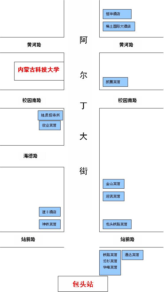 1、本图为beat365英国官方网站周边宾馆(酒店)示意图,仅供我校新生报到期间家长及新生参考使用。2、如图中标示内容临时有变,恕不另行通知。3、图中标示出的宾馆(酒店)食宿条件各异,请新生及家长根据个人情况自行选择。4、我校距离包头火车站仅1.5公里,可乘坐1、2、8、22路等公交车直达。